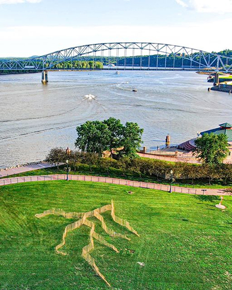 Downstream, 2021 Installed on the Riverwalk in Dubuque, Iowa, this piece is a scale model of the Mississippi River watershed, with the goal of reminding us that the actions of a few can yield greater consequences downstream.