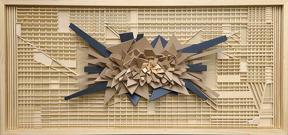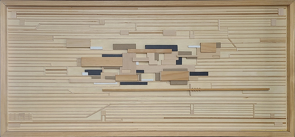 Urban Experiment 01, 2020, 22”H x 48”W x 4”D, basswood, chipboard